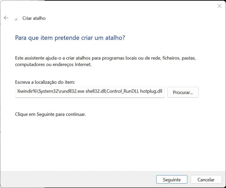 Como criar um atalho para a funcionalidade ‘Remover hardware em segurança’