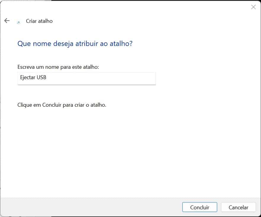 Dê um nome ao atalho e clique em ‘Concluir’.