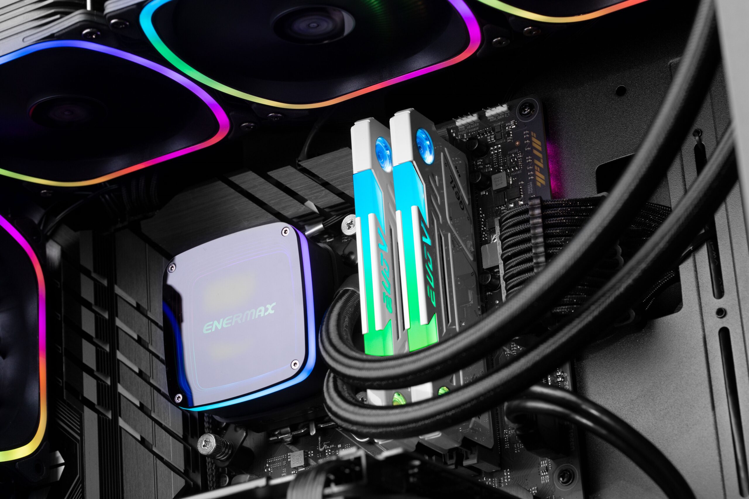 Segundo o fabricante, esta solução, que recorre a duas micro ventoinhas, permitem uma melhoria na dissipação do calor gerado pelos módulos de memória em 45%, face aos tradicionais sistemas de arrefecimento passivo (dissipador passivo). Tanto as ventoinhas, como toda a secção superior do dissipador, recorrem a um sistema de iluminação RGB, compatível com os principais sistemas de iluminação do mercado: Asus Aura Sync, ASRock Polychrome RGB, Gigabyte RGB Fusion 2.0 e MSI Mystic Light Sync.