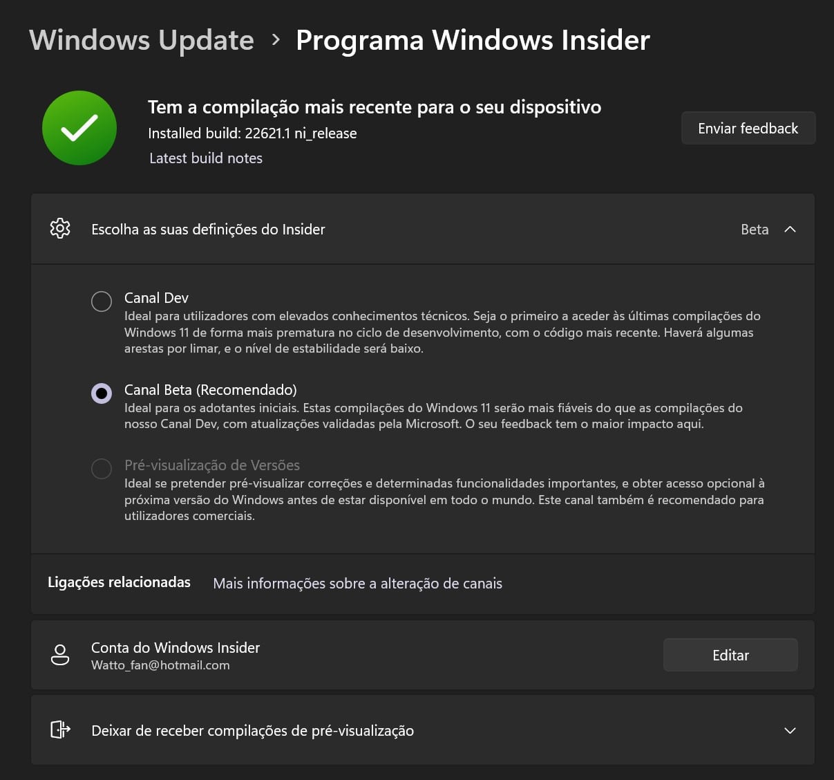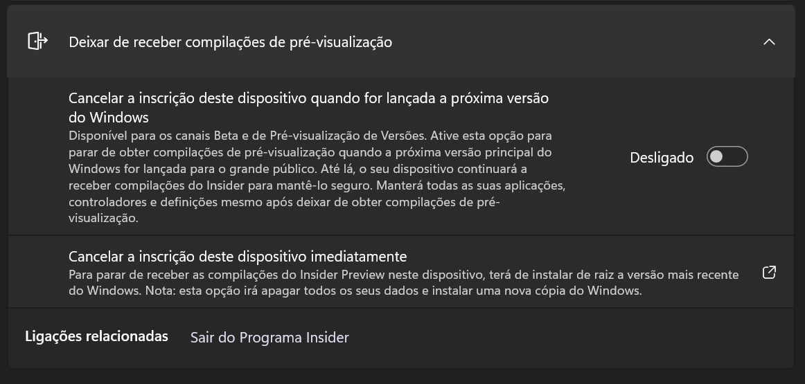 • Sair do Windows Insider