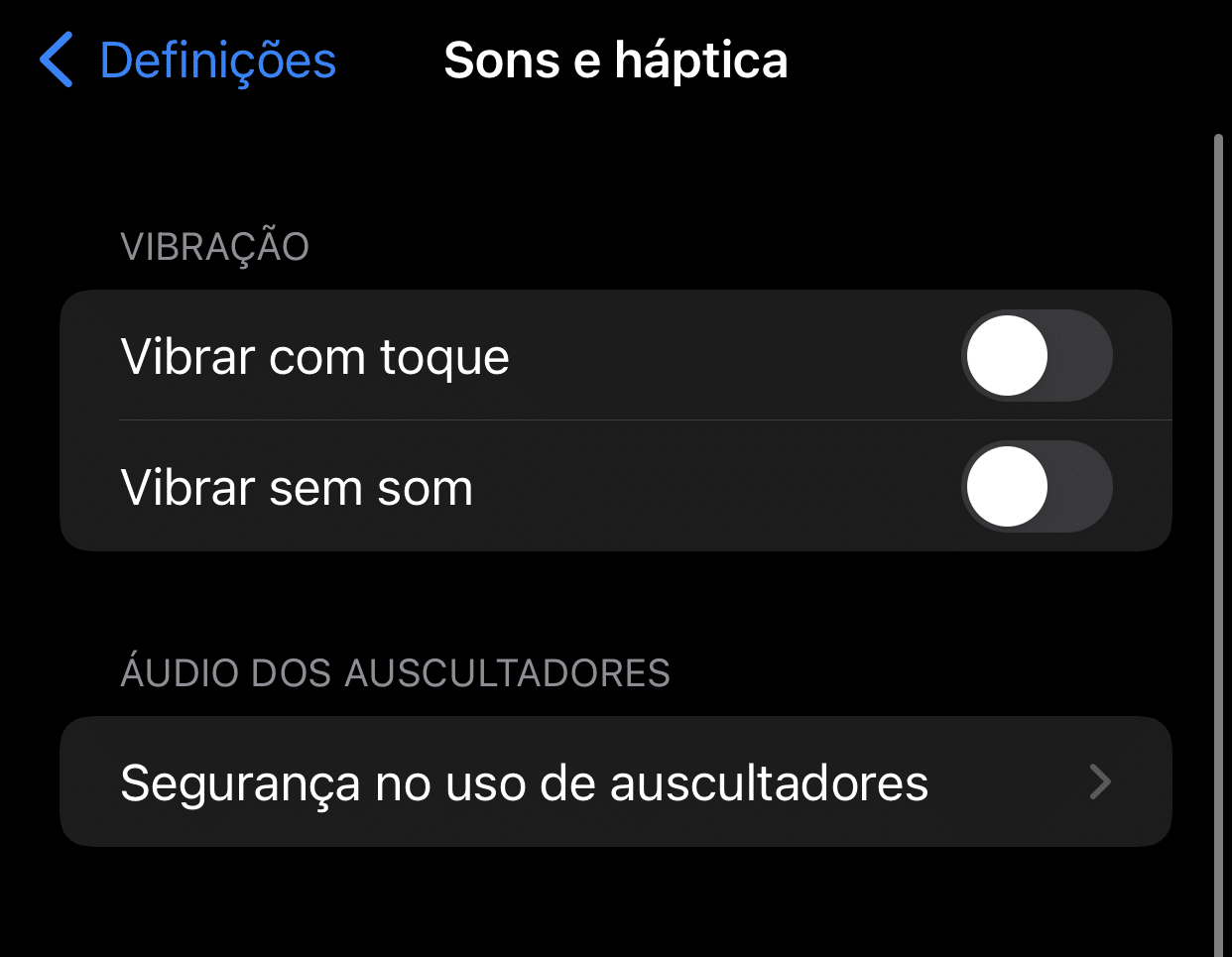 A Apple tem mais cuidado com a audição dos seus clientes de iPhone do que com os que compram os seus computadores, porque adicionou uma funcionalidade de limitação de volume aos iPhones. Para a activar, vá a ‘Definições’, depois toque em ‘Sons e Háptica’ e a seguir em ‘Segurança no uso de Auscultadores’. Neste ecrã, pode ligar a funcionalidade ‘Reduzir sons altos’. Ao ligar esta opção, pode usar o cursor para escolher o limite de volume.