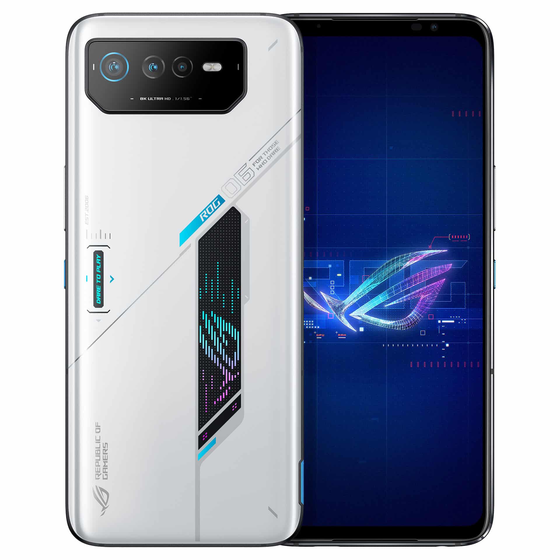 Juntamente com este SoC encontram-se 8, 12 ou 16 GB de memória RAM LPDDR5, bem como 128, 256 ou 512 GB de armazenamento do tipo UFS3.1. No caso do ROG Phone 6 Pro, este estará disponível somente com a configuração de 18 GB de memória RAM e 512 GB de armazenamento. Ambos estão equipados com uma gigantesca bateria de 6000 mAh, que é compatível com sistema de carregamento rápido de 65W.