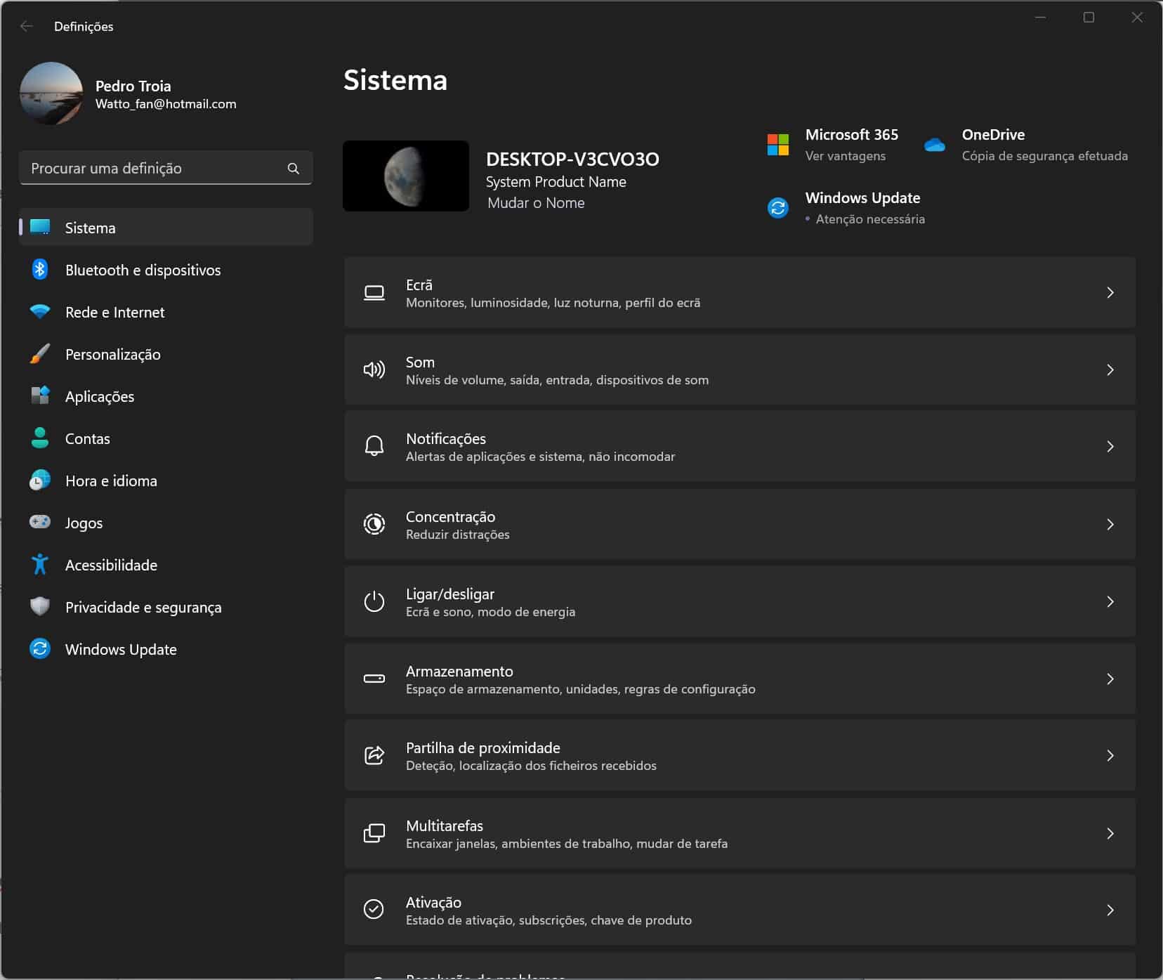 Clique no botão ‘Iniciar’ e depois clique em ‘Definições’. Em ‘Sistema’, clique em ‘Armazenamento’ na lista do lado direito.