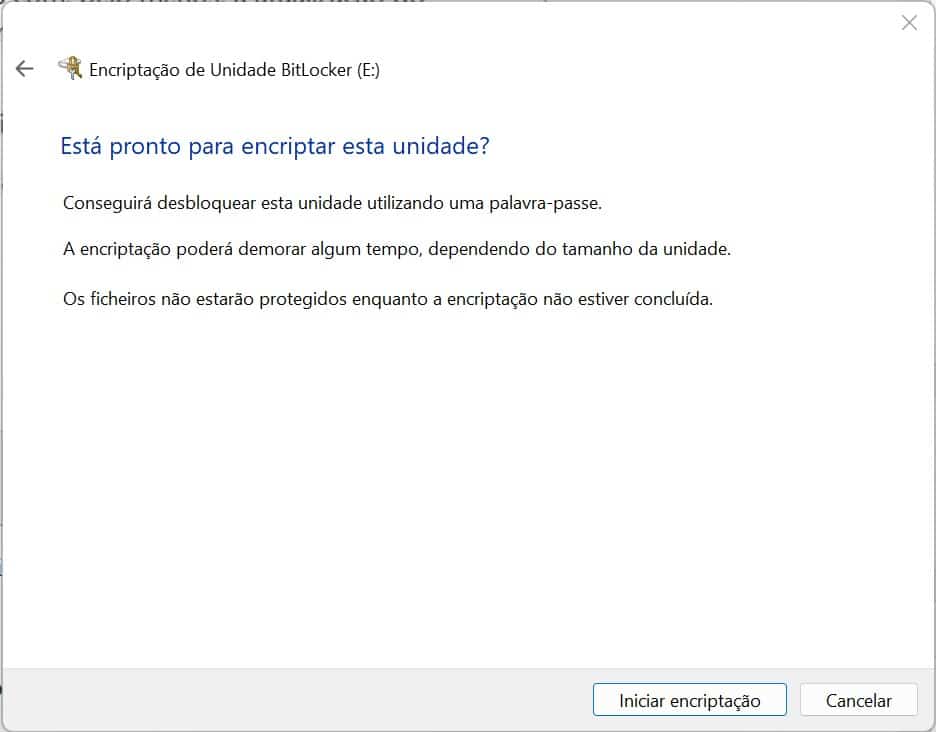 Assim que clicar no botão ‘Iniciar encriptação’, a janela fecha-se automaticamente. A drive fica logo protegida pela password que definiu anteriormente.