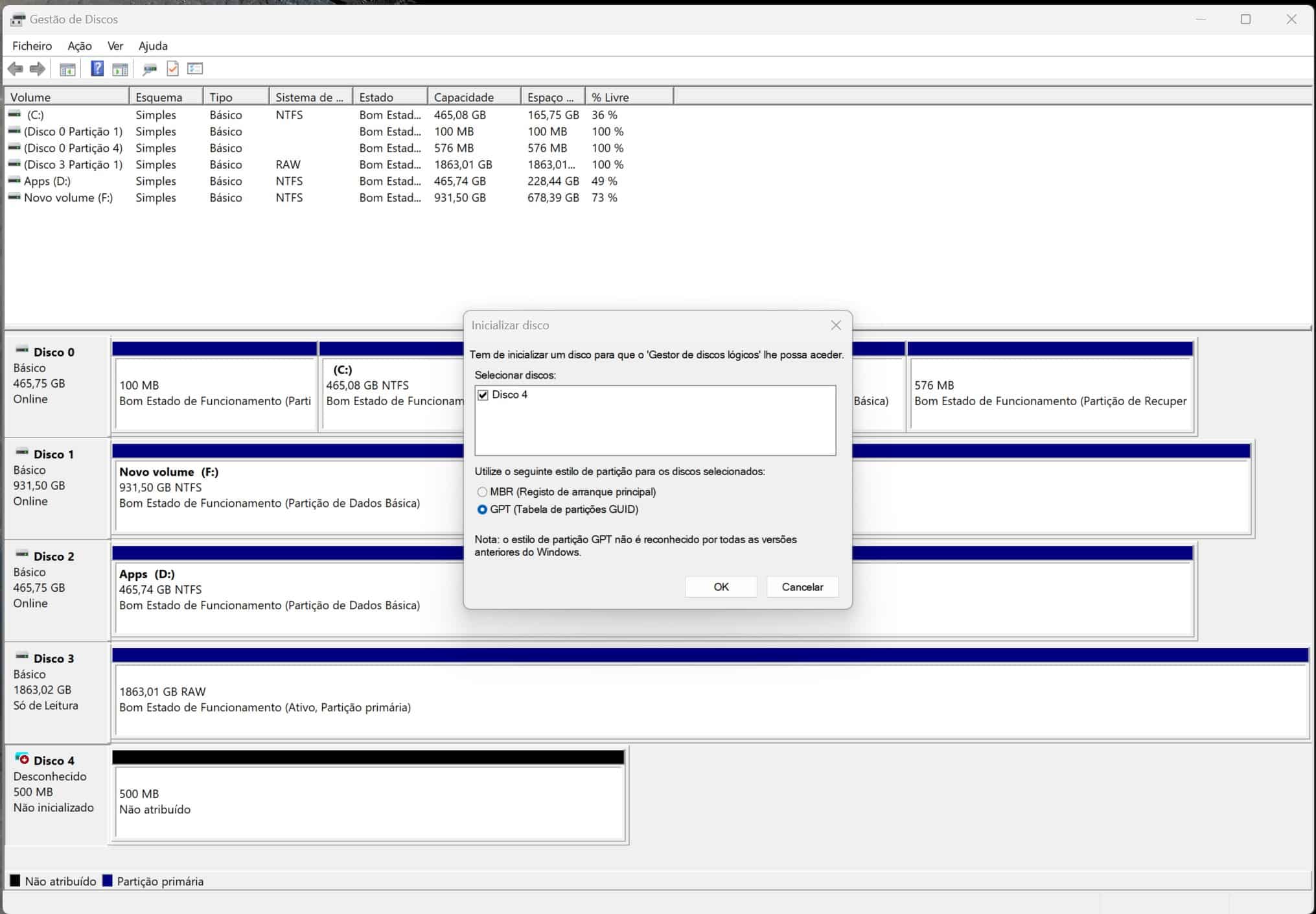 Escolha a opção ‘GPT’ e depois clique em ‘Ok’.