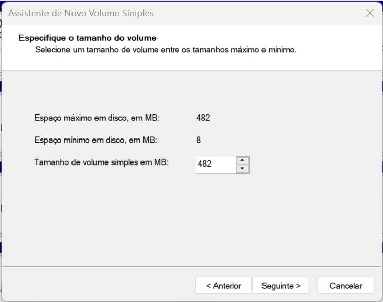 Clique em ‘Seguinte’ até acabar o ‘Assistente de Novo Volume Simples’, porque não será necessário alterar quaisquer definições padrão.