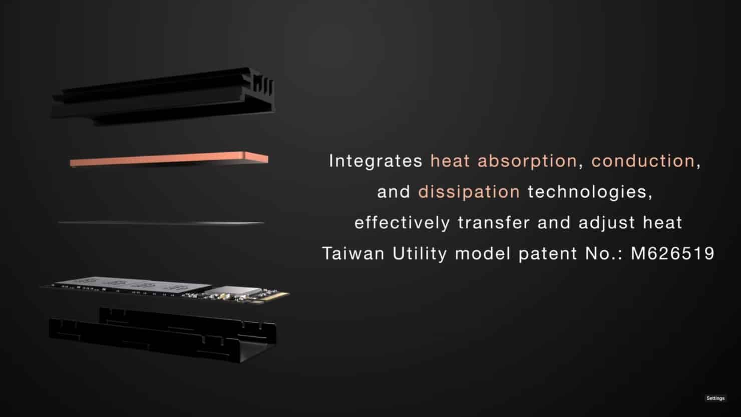 Relativamente ao dissipador em si, este é composto por um dissipador superior em alumínio, para uma melhor dissipação de calor, a já referida câmara de vapor, e um adesivo térmico que permite transferir o calor do módulo SSD M.2 para a câmara de calor.