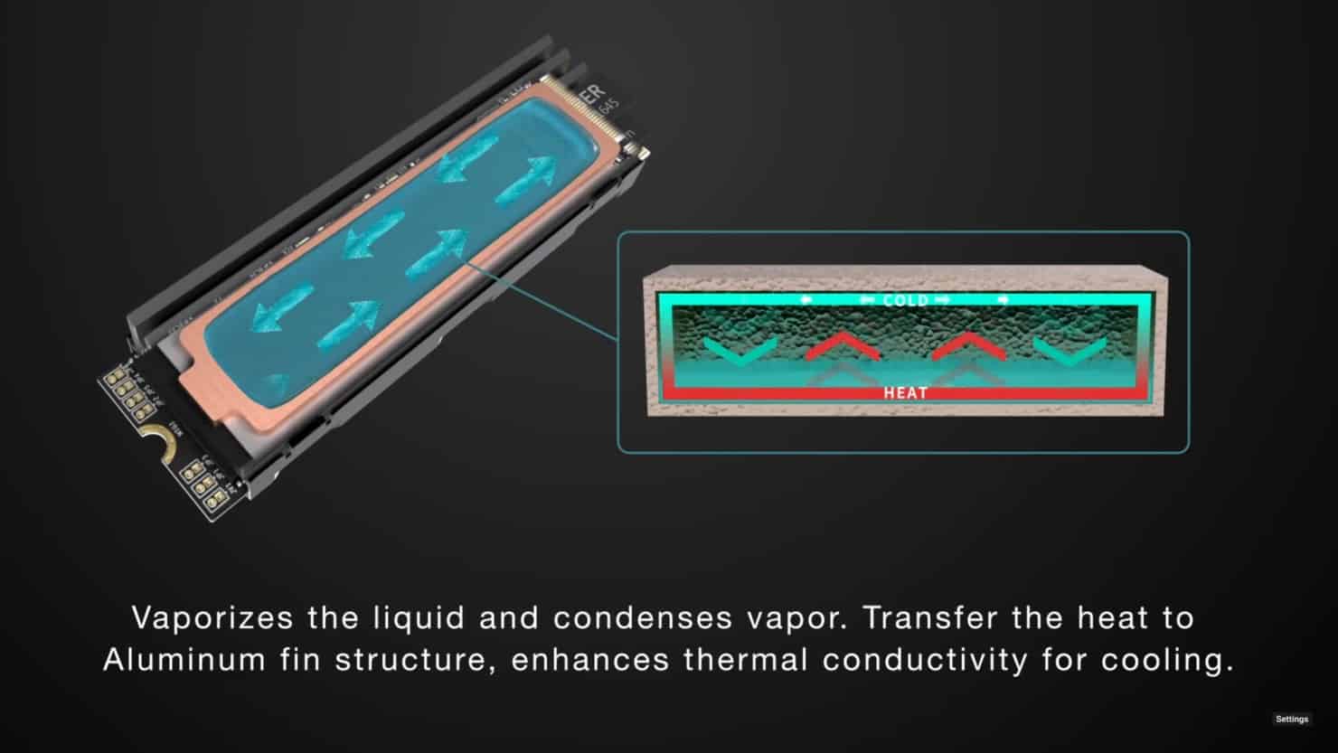 Esta utiliza um líquido específico no seu interior que, com o calor proveniente do módulo SSD, acaba por vaporizar, transferindo o calor da base para a zona fria do dissipador no topo, sendo que o vapor volta a condensar, convertendo-se para o estado líquido novamente.