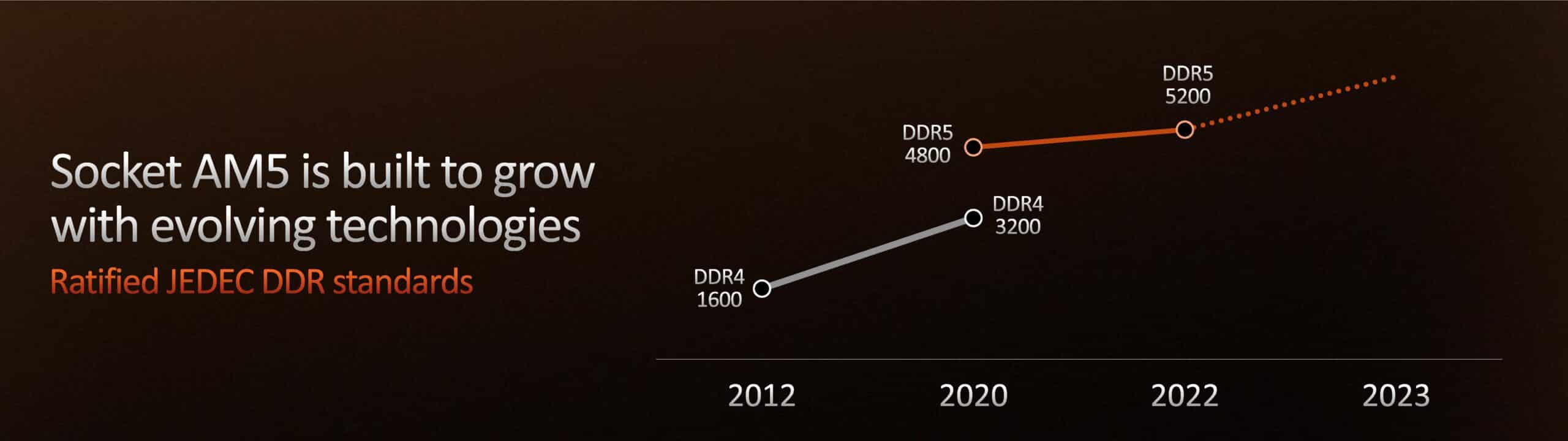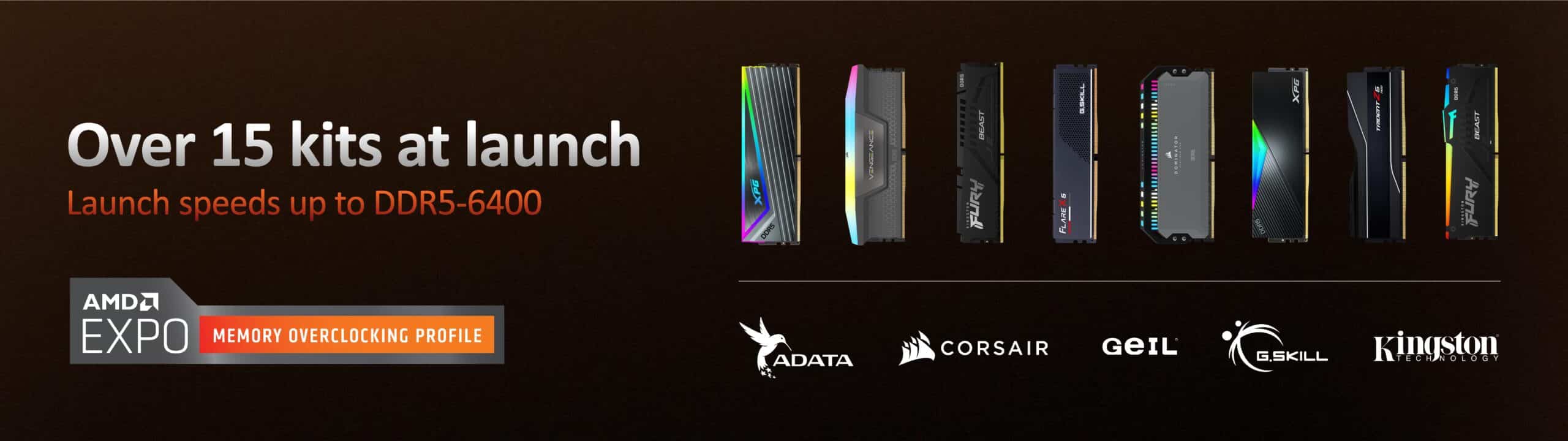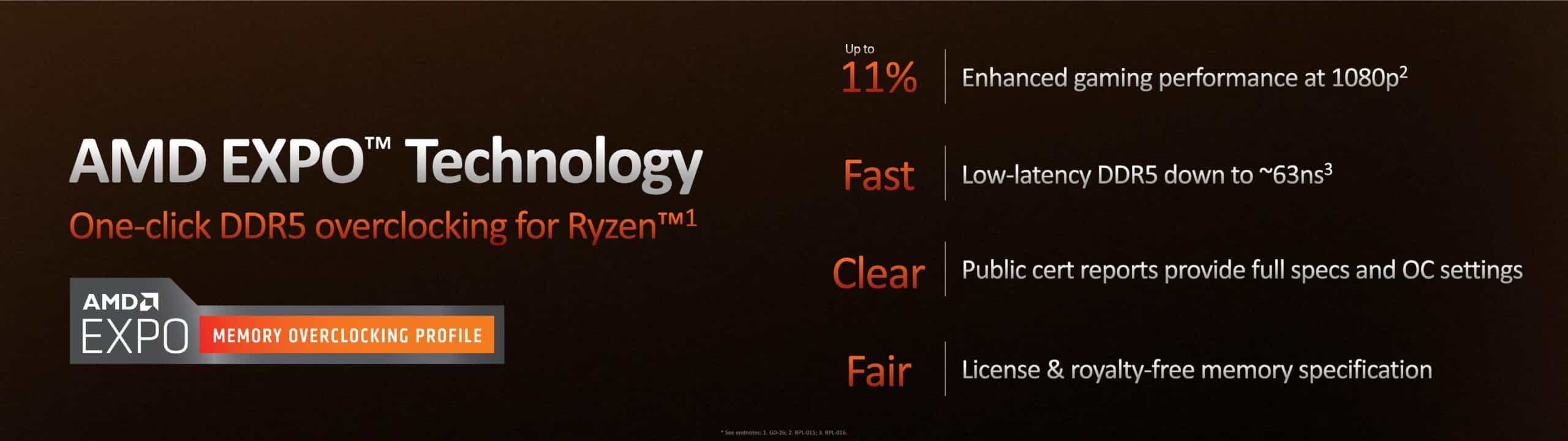 A introdução das memórias DDR5 na nova plataforma AM5 permitirá utilizar a nova tecnologia AMD EXPO (Extented Profiles for Overclocking), uma solução similar à utilizada pelo sistema XMP da Intel, que permite configurar e aplicar overclock nas memórias, de forma automática e simplificada. Através desta solução, todas as memórias, que são certificadas, conseguem aproveitar a sua elevada largura de banda (até DDR5-6400), associada às mais baixas latências possíveis.