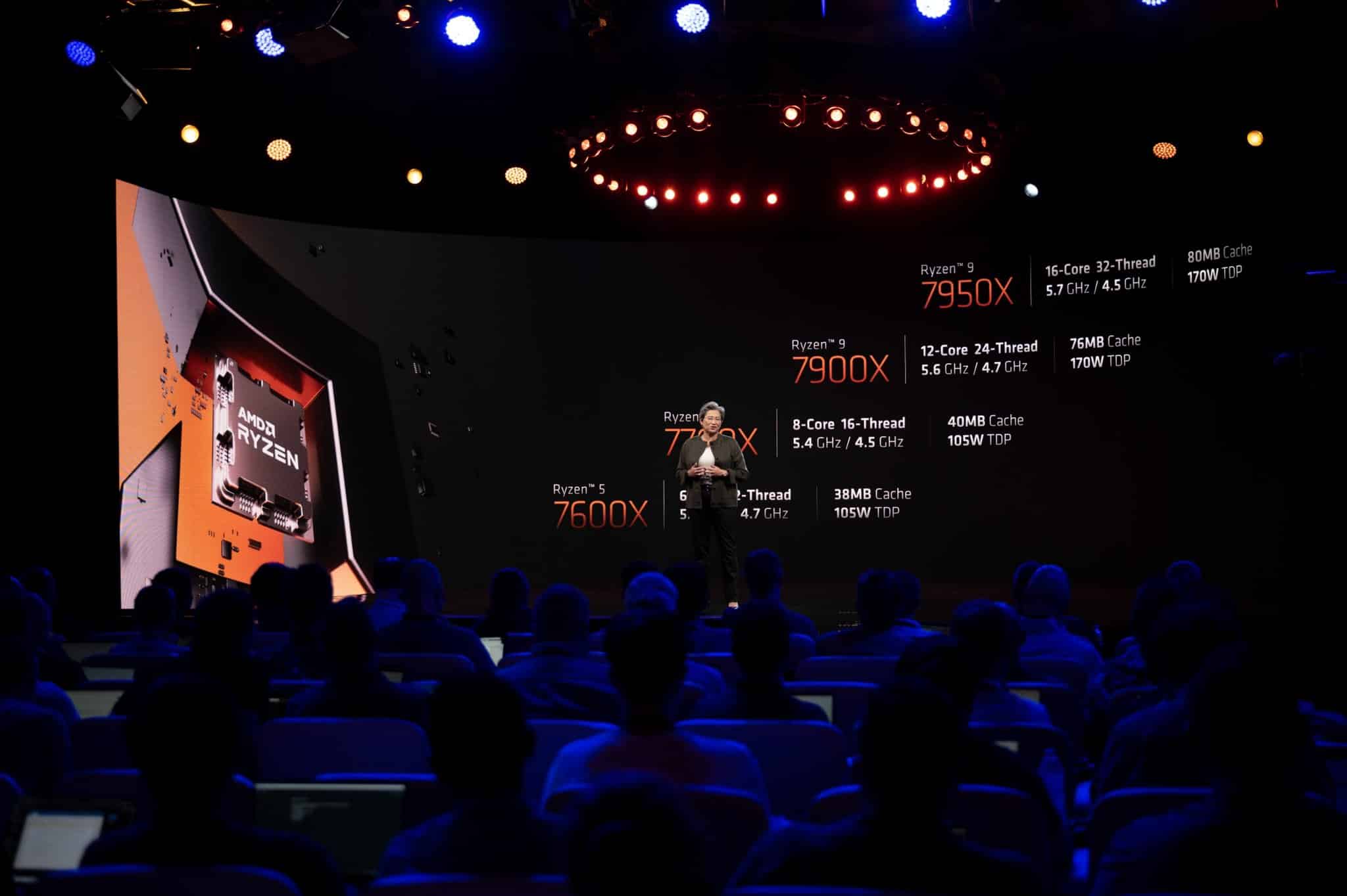 Foi durante o evento “Together we advance_PCs”, que decorreu em Austin, no Texas, que Dr. Lisa Su, Presidente e CEO da AMD, apresentou oficialmente a nova família de processadores AMD Ryzen 7000 de arquitectura Zen4. Tal como se suspeitava, numa fase inicial, serão lançados a 27 de Setembro quatro modelos, os Ryzen 9 7950X, Ryzen 9 7900X, Ryzen 7 7700X e Ryzen 5 7600X.