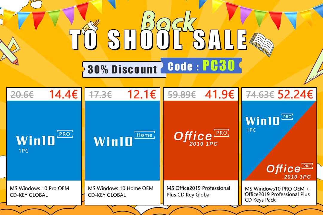 Genuine Lifetime Windows 10 Pro + Office 2019 Pro Plus CD Keys Pack €52,2 (após 30% de desconto com código PC30)