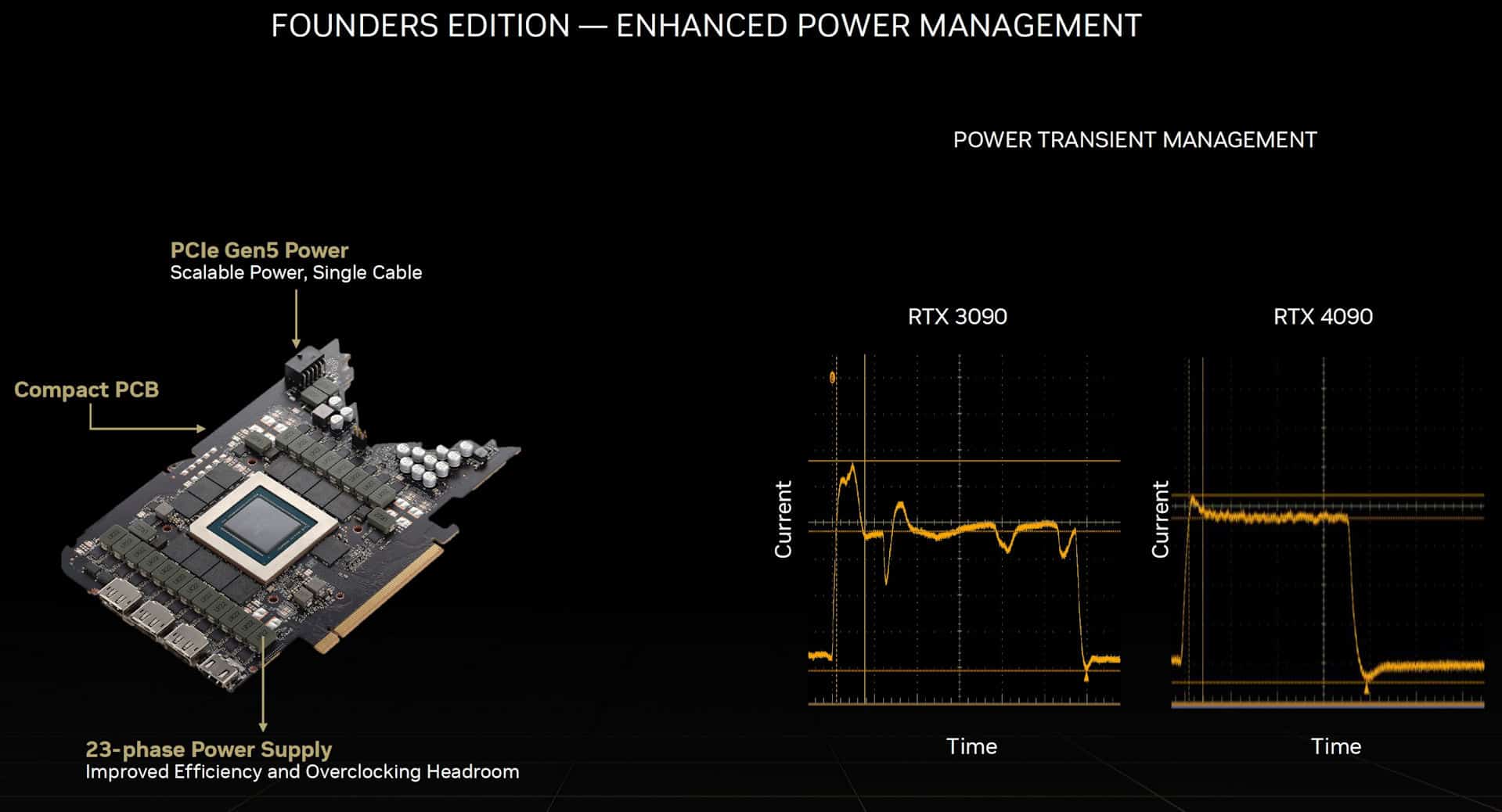Segundo a Nvidia, este circuito utiliza uma solução com 23 fases, o que permite uma gestão mais precisa e estável na alimentação da nova placa, face à sua antecessora, a GeForce RTX 3090, que utilizava uma solução de 20 fases. Está igualmente presente uma só ligação de alimentação externa PCIe 5.0 de 16 contactos, que cumpre as novas normas ATX 3.0.