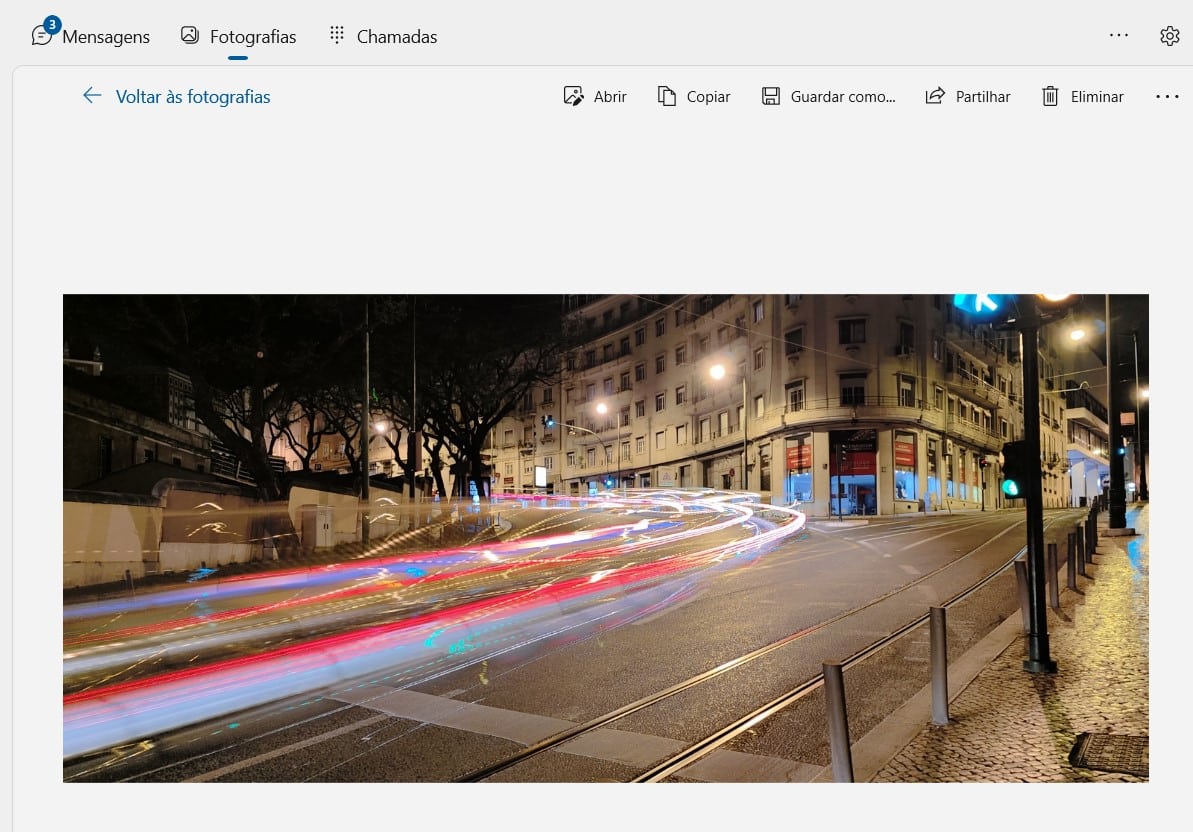 5 – Uma das funcionalidades mais práticas do Vínculo ao Telemóvel é o acesso às fotografias do smartphone. Aceda ao separador ‘Fotografias’ e clique na que quiser ver num tamanho maior; no topo da janela estão botões que permitem ‘Abrir’ a foto na app correspondente do Windows e até mesmo apagá-la do telefone – contudo, para isto, precisa de autorizar este acesso no Android (o programa explica como fazer, da primeira vez).