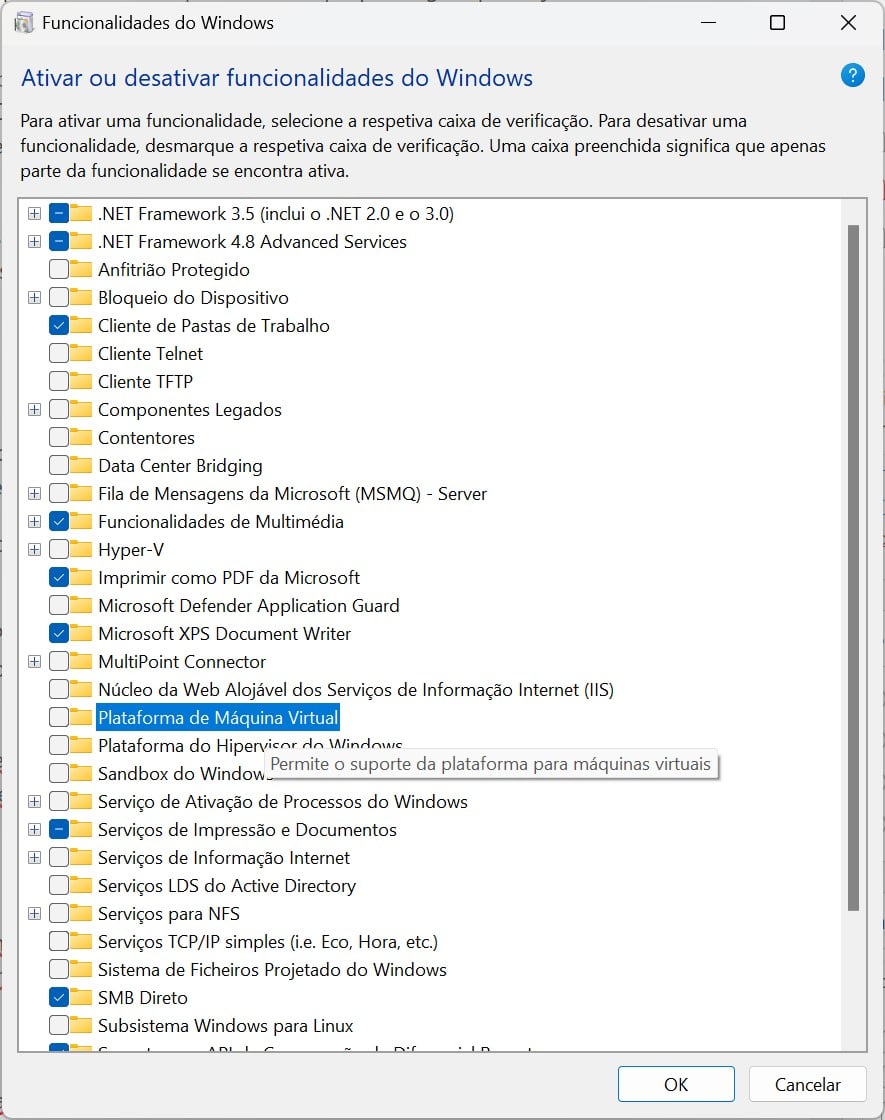 A segunda dica mencionada no guia da Microsoft é desligar a Virtual Machine Platform (Plataforma de Máquina Virtual, na versão em português). A função da Plataforma de Máquina Virtual, é permitir a utilização de máquinas virtuais em Windows para várias tarefas. Esta funcionalidade também não está ligada por defeito nos computadores que fizeram o upgrade para o Windows 11.