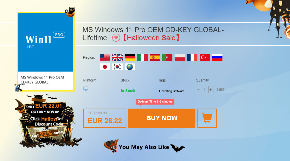 A CDKeylord, vende licenças vitalícias OEM (as mesmas que vêm instaladas quando se compra um PC de qualquer marca) do Windows 10 Pro por apenas 14,4 €, Windows 10 Home por 12,1€ ou Windows 11 Pro por 19,7€. Estes preços são válidos ao usar o código de desconto PC30. O mesmo código, PC30, também pode ser usado para obter um desconto de 30% em licenças do Office 2016 e 2019 Pro ou em conjuntos de Windows 10 Pro mais o Office, para que possa começar logo a trabalhar.