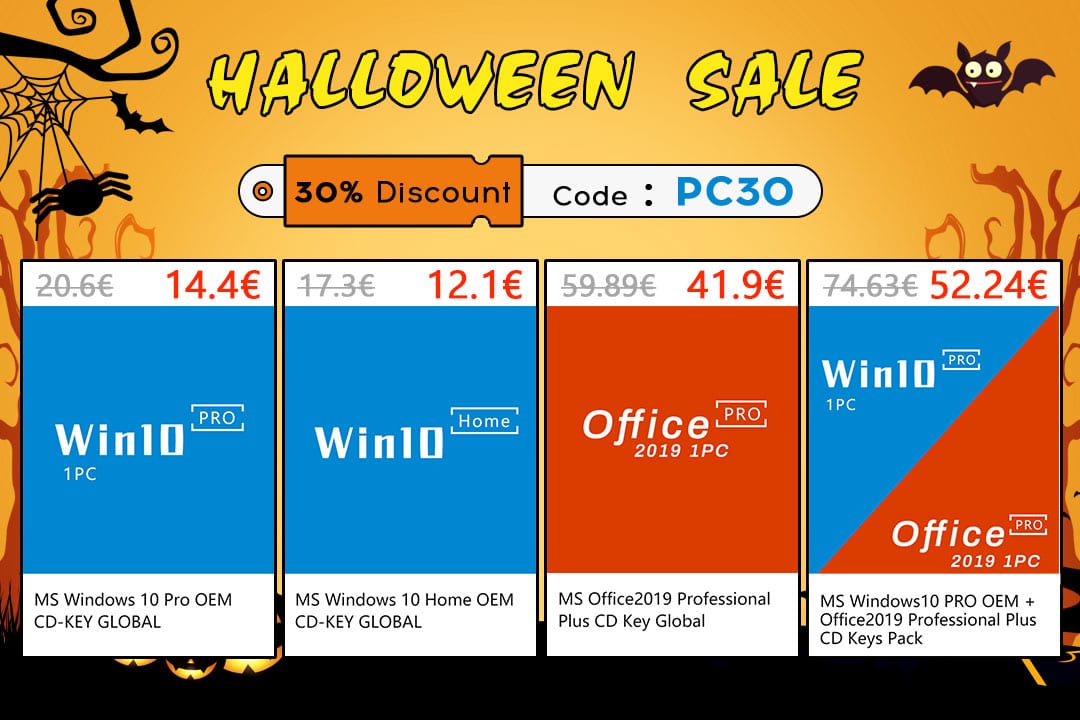 Genuine Lifetime Windows 10 Pro + Office 2019 Pro Plus CD Keys Pack €52,2 (após 30% de desconto com código PC30)