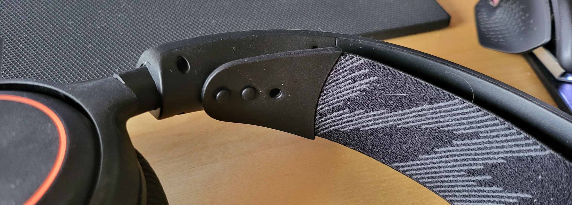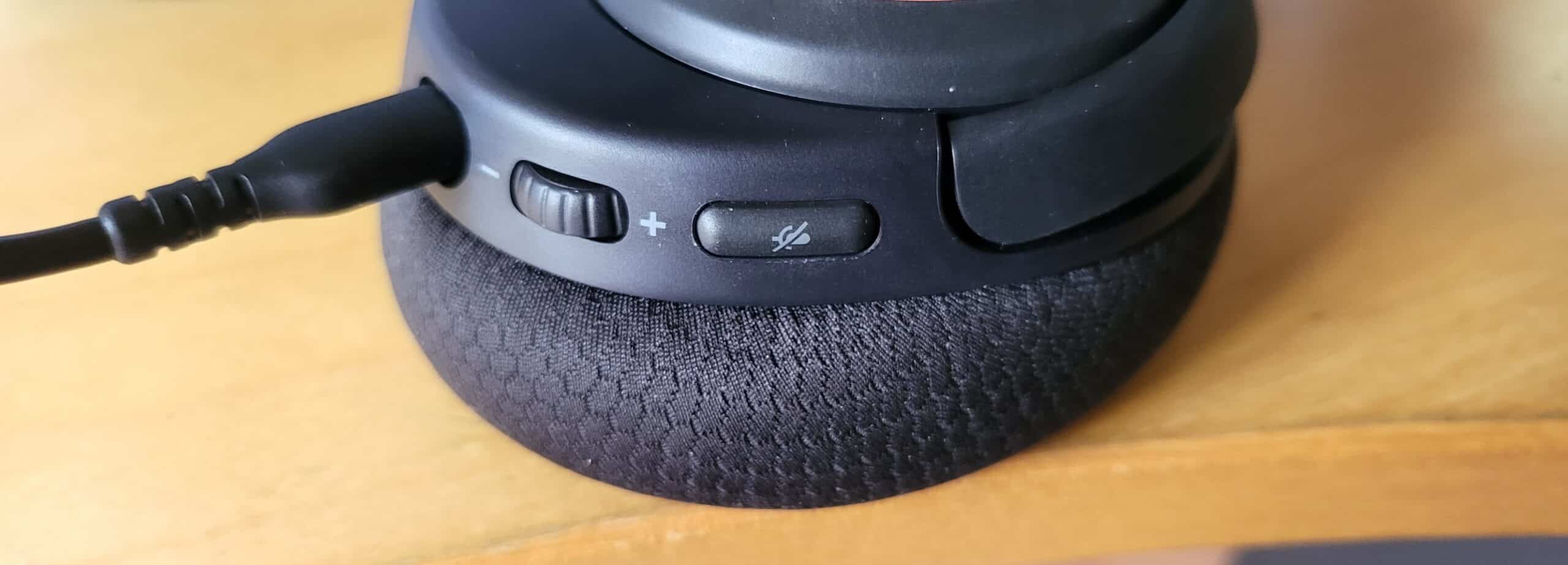 Como é hábito, os controlos estão do lado esquerdo e são compostos por um interruptor para ligar e desligar o microfone e um potenciómetro para o volume. No auscultador do lado direito está um interruptor que serve para ligar e desligar a iluminação LED.