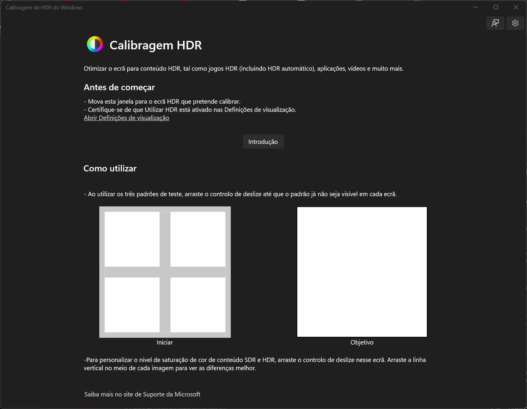 Se estiver a usar vários ecrãs, a Microsoft aconselha que deve usar o programa de calibração no ecrã HDR principal antes de o fazer nos restantes.