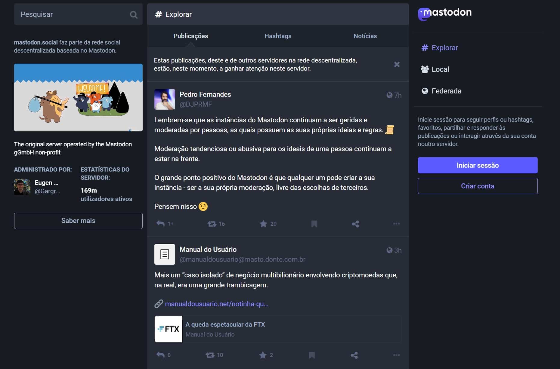 Agora, pode começar a explorar o Fediverse.