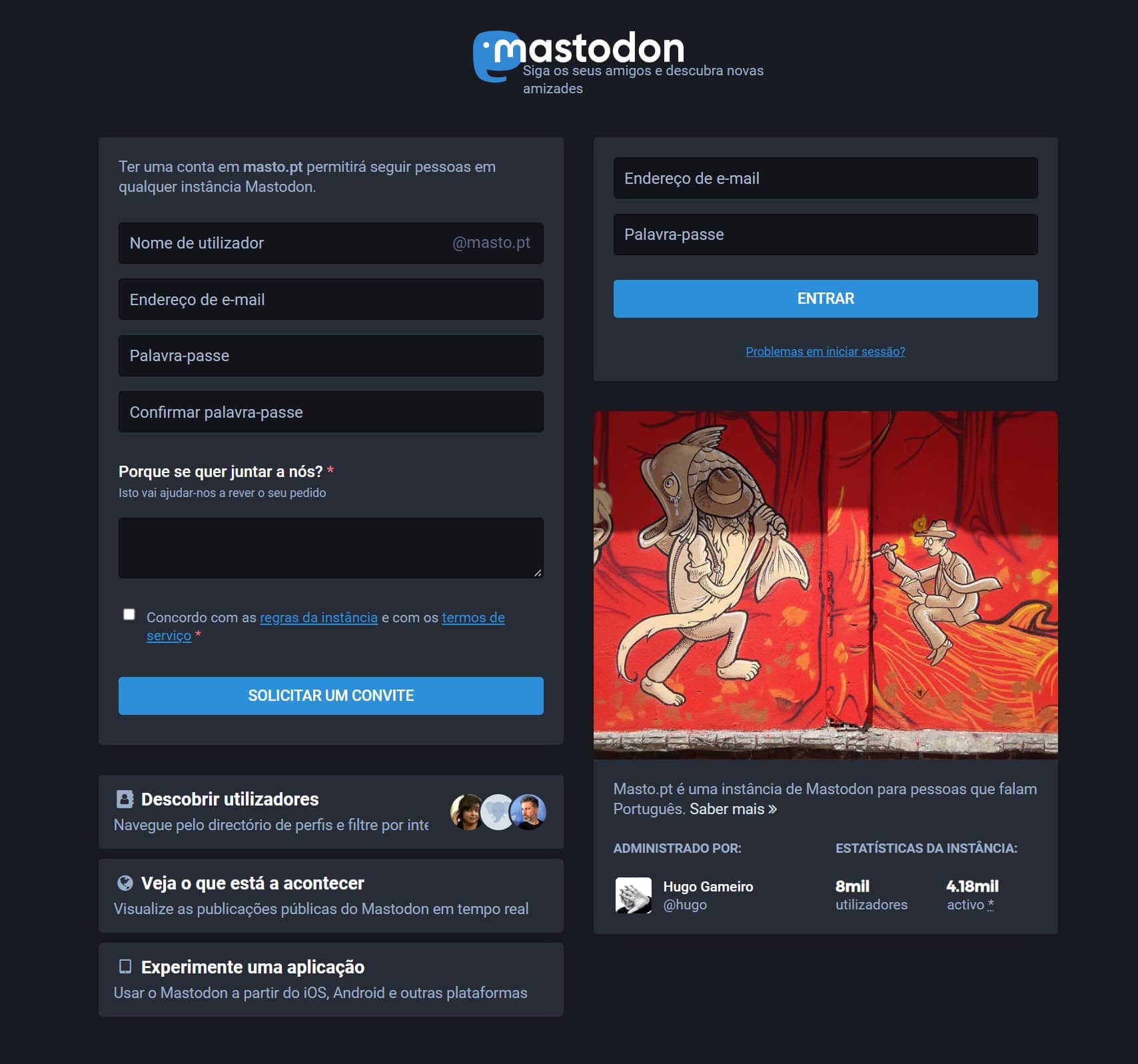 O primeiro passo é o mais complicado. Tem de encontrar um servidor Mastodon, que esteja a aceitar novas inscrições.