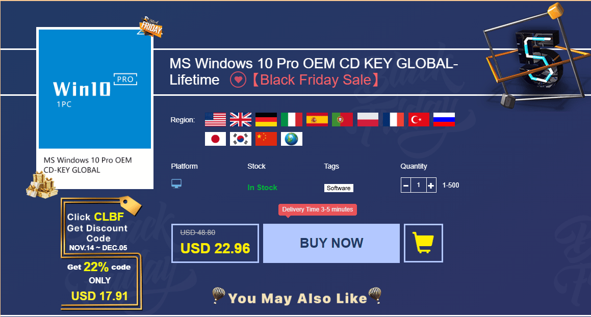 - Genuine Lifetime Microsoft Windows 10 Pro OEM CD-KEY GLOBAL €14,4 (após 30% de desconto com código PC30)