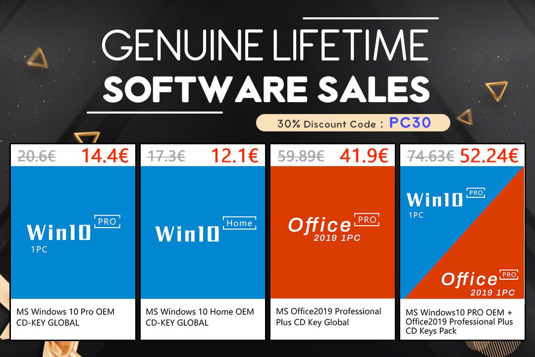 - Genuine Lifetime Windows 10 Pro + Office 2019 Pro Plus CD Keys Pack €52,2 (após 30% de desconto com código PC30)