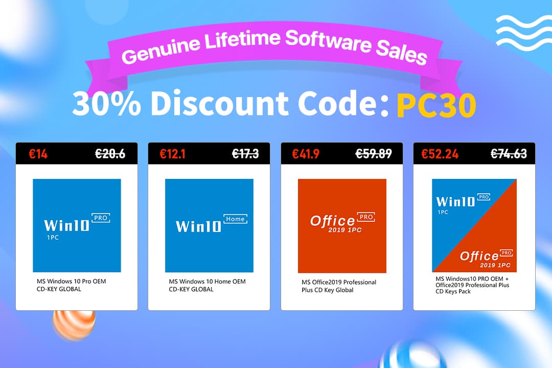 Genuine Lifetime Windows 10 Pro + Office 2019 Pro Plus CD Keys Pack €52,2 (após 30% de desconto com código PC30)