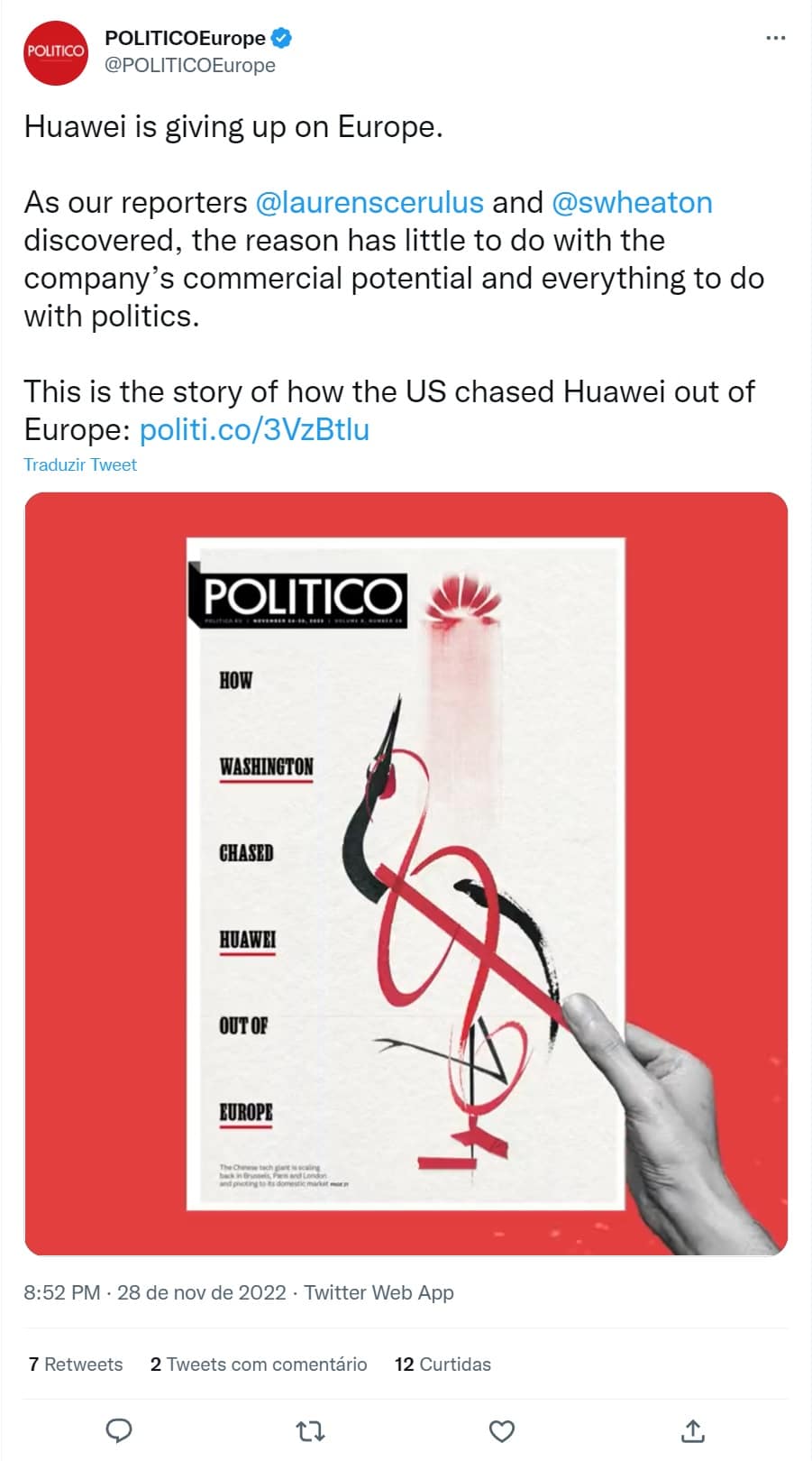 Segundo uma grande reportagem publicada pelo jornal Politico, a Huawei está a mudar radicalmente a sua estratégia global, tendo o fundador da empresa, Ren Zhengfei, anunciado durante o Verão que a marca iria abandonar os mercados onde as maiores sanções estão em vigor, como os EUA, Reino Unido, Canadá, Austrália e Nova Zelândia, bem como a Índia.