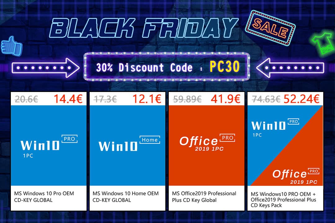 Genuine Lifetime Windows 10 Pro + Office 2019 Pro Plus CD Keys Pack €52,2 (após 30% de desconto com código PC30)