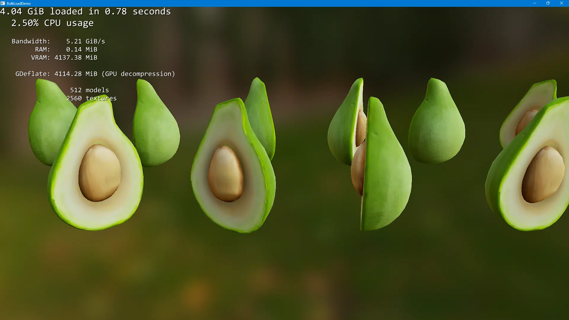 Segundo os testes, ficheiros com alguns gigabytes demoram entre 0,5 segundos a 5 segundos a carregar com um nível de utilização do CPU entre 30 e 100 por cento. Outros, mostram os mesmos dados a carregarem em 0,5 segundos com um nível de utilização do CPU a menos de 5 por cento, o que indica que é o GPU que está a levar a cabo a tarefa.