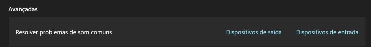 Na secção ‘Avançadas’, clique em ‘Dispositivos de saída’, junto a ‘Resolver problemas de som comuns’.