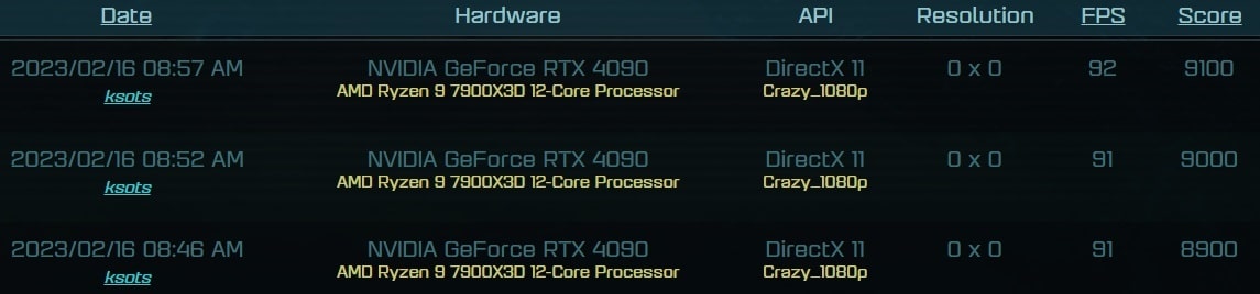 Entre os leaks de benchmarks revelados, encontra-se um AMD Ryzen 9 7900X3D de doze núcleos no Ashes of the Singularity Benchmark, com resultados de 8900, 9000 e 9100 pontos em conjunto com uma GeForce RTX 4090, embora estes resultados não demonstrem grande coisa, uma vez que este benchmark é reconhecido pelos resultados inconstantes.