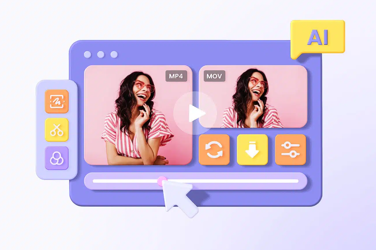 O separador conversão permite arrastar e soltar um ficheiro de vídeo para a aplicação e optar por converter de e para mais de 500 formatos de vídeo e 300 formatos de áudio. Também pode optar por converter para formatos adequados para uma grande variedade de dispositivos iOS e Android, através da utilização de codecs de áudio e vídeo específicos, ou uma variedade de redes sociais, que têm necessidades específicas no que diz respeito aos codecs utilizados e dimensões dos vídeos.