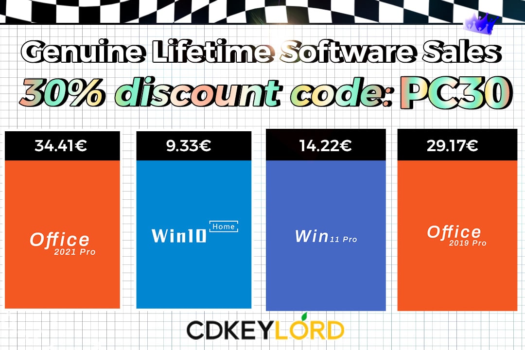 A CDKeylord, vende licenças vitalícias OEM (as mesmas que vêm instaladas quando se compra um PC de qualquer marca) do Windows 10 Pro por apenas 14,4€, Windows 10 Home por 12,1€ ou Windows 11 Pro por 19,7€. Estes preços são válidos ao usar o código de desconto PC30. O mesmo código, PC30, também pode ser usado para obter um desconto de 30% em licenças do Office 2016 e 2019 Pro ou em conjuntos de Windows 10 Pro mais o Office, para que possa começar logo a trabalhar.