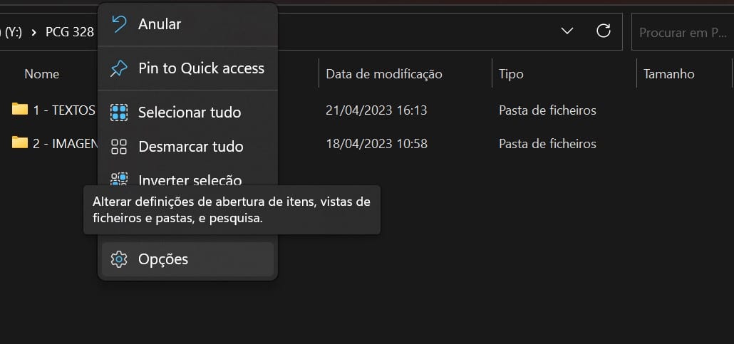 Escolha a opção que quiser no menu ‘Optimizar a pasta para:’.