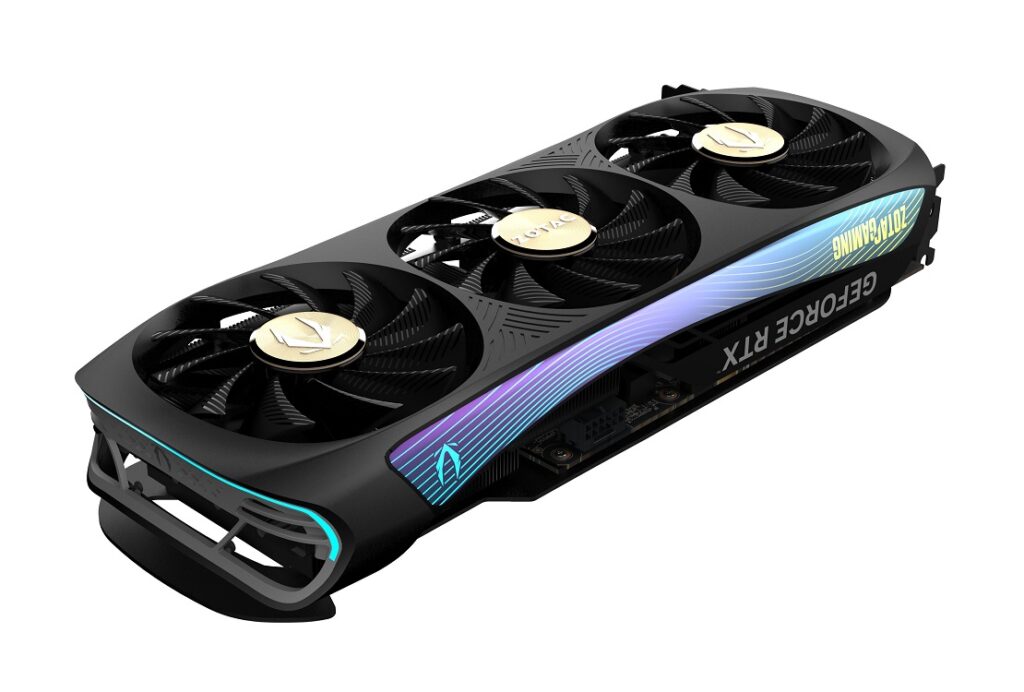 Com a chegada desta RTX 4070 AMP Airo ao nosso “laboratório”, damos as boas-vindas oficiais à Zotac, em Portugal. Esta placa tem, como base, a GeForce RTX 40 mais acessível do mercado, que conta com a GPU AD104 limitada a 5888 núcleos CUDA, o que representa uma diminuição de 23% de unidades de processamento face aos 7680 núcleos CUDA da RTX 4070 Ti. Tirando este detalhe, esta placa é praticamente idêntica a este modelo: tem os mesmos 12 GB de memória GDDR6X a 21 Gbps, com um barramento de 192-bit. Por se tratar de uma versão AMP Airo, distingue-se pela aplicação de um vistoso sistema de arrefecimento curvo, complementado por um discreto sistema de iluminação RGB. Graças a este sistema mais eficaz, a Zotac foi capaz de elevar a frequência Boost desta GPU até 2535 MHz, mas isto obrigou a fazer subir o TDP para os 215 W, face aos 200 W do modelo de referência da. Só é pena que a marca tenha optado pela nova ficha de alimentação adicional 12VHPWR de dezasseis contactos.