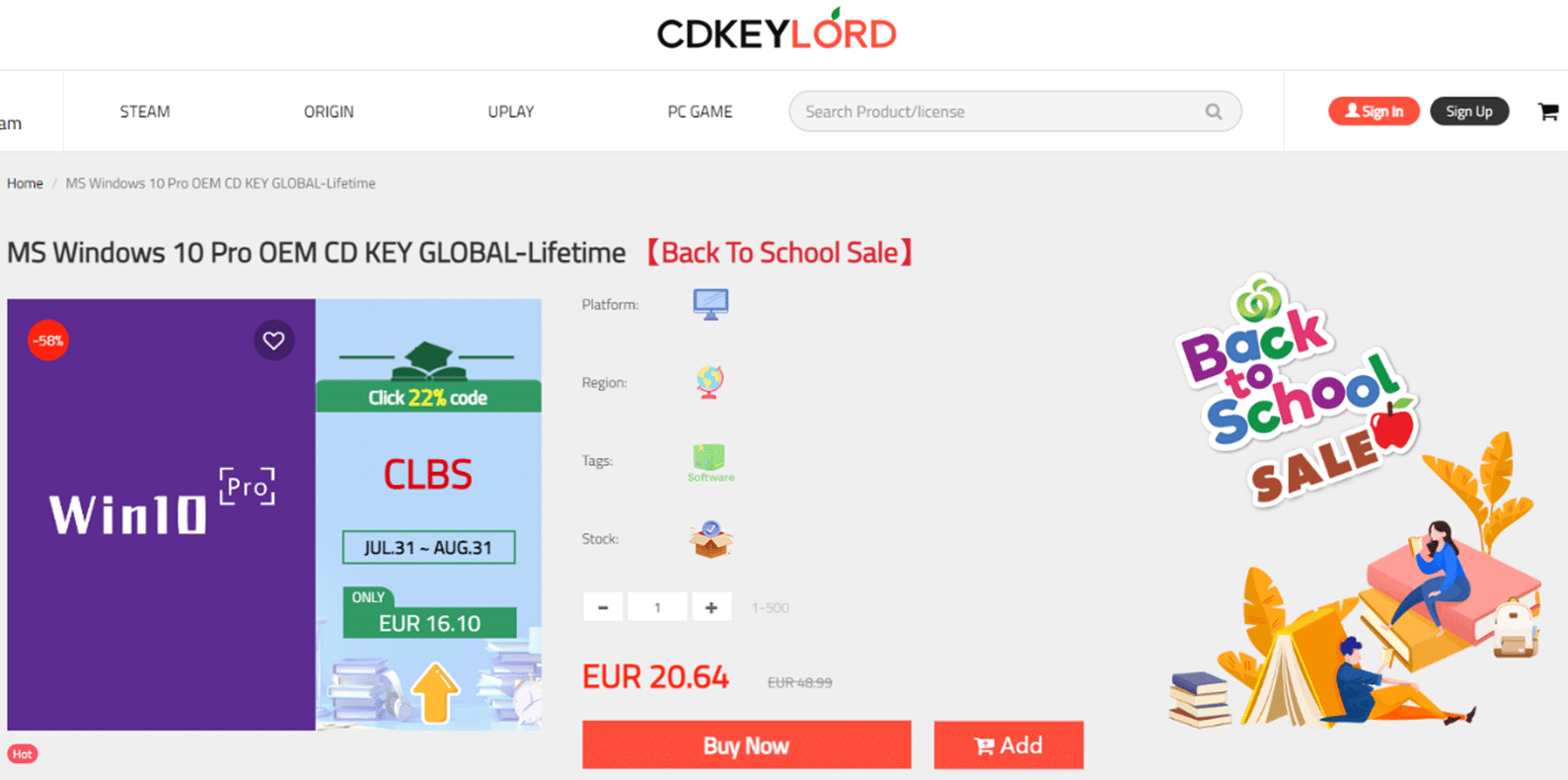 Cdkeylord: Promoção Regresso às Aulas: Licenças do Windows 10 e Windows 11 a partir de 14 euros!