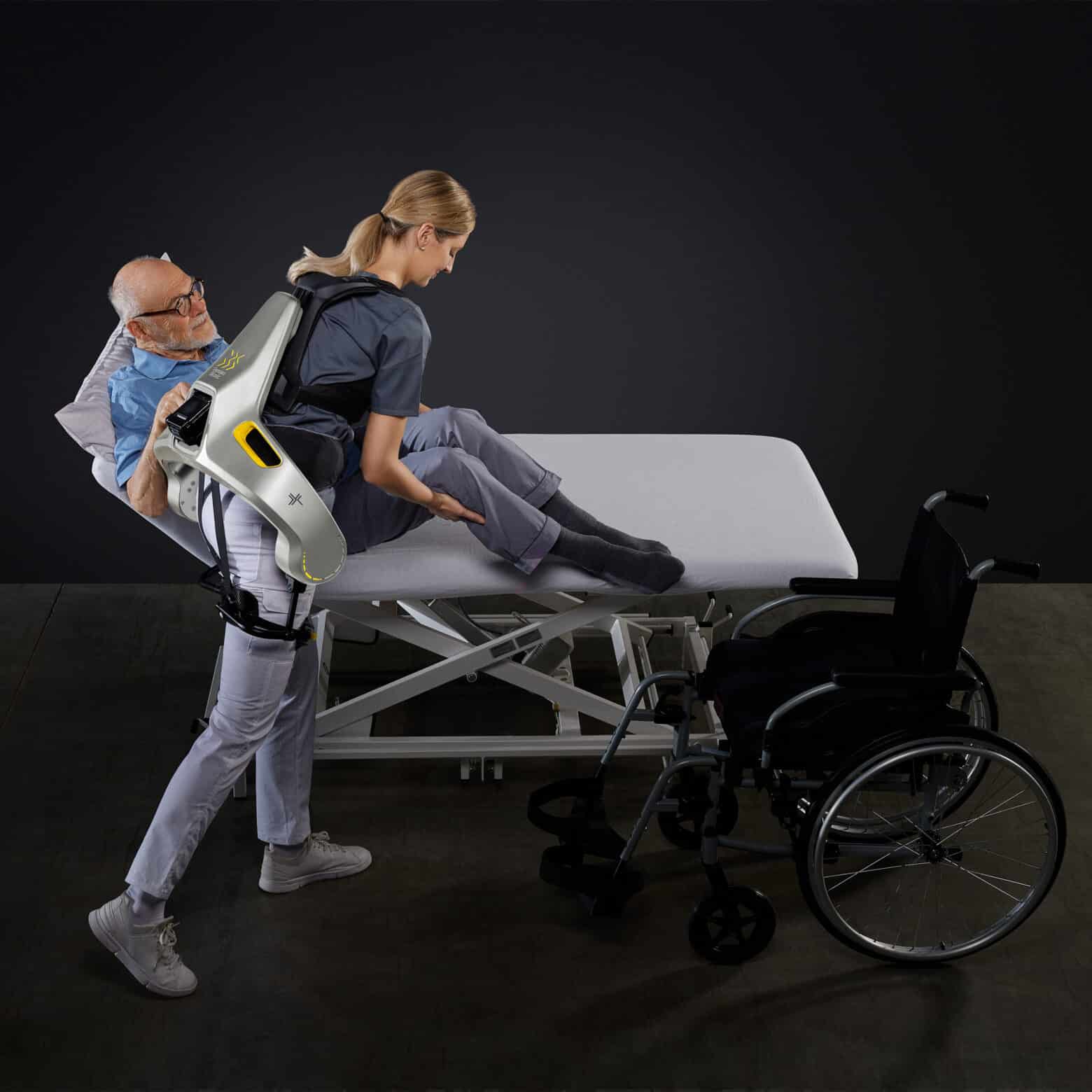 Para responder a estas dificuldades, o Apogee+ facilita o andar e pode ajudar a pegar em objectos até 30 kg. O exoesqueleto também tem umas pegas para que os pacientes se possam agarrar enquanto estão a ser ajudados pelos profissionais. Este dispositivo também pode ser usado para ajudar a reposicionar pacientes imobilizados, passá-los para cadeiras de rodas, fazer exames ou em outras tarefas em que os profissionais tenham de estar em posições desconfortáveis, que exigem esforço físico.