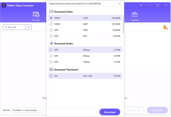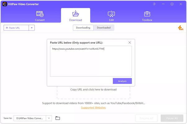 • Volte para o HitPaw Conversor de Vídeo e clique em “Adicionar URL” ou “Colar URL”.