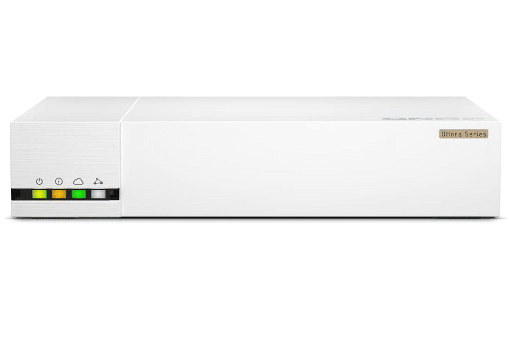 O QHora 322 é um router sem Wi-Fi com quatro portas RJ45 de 10 GbE (uma delas para a ligação da WAN) e cinco portas (também RJ45) de 2,5 GbE, o que permite ligações de alta velocidade numa rede local com fios. Este modelo também permite criar uma rede VPN de nível empresarial, para uma ligação segura entre vários locais, através da nuvem, com a tecnologia QuWAN SD-WAN da QNAP.