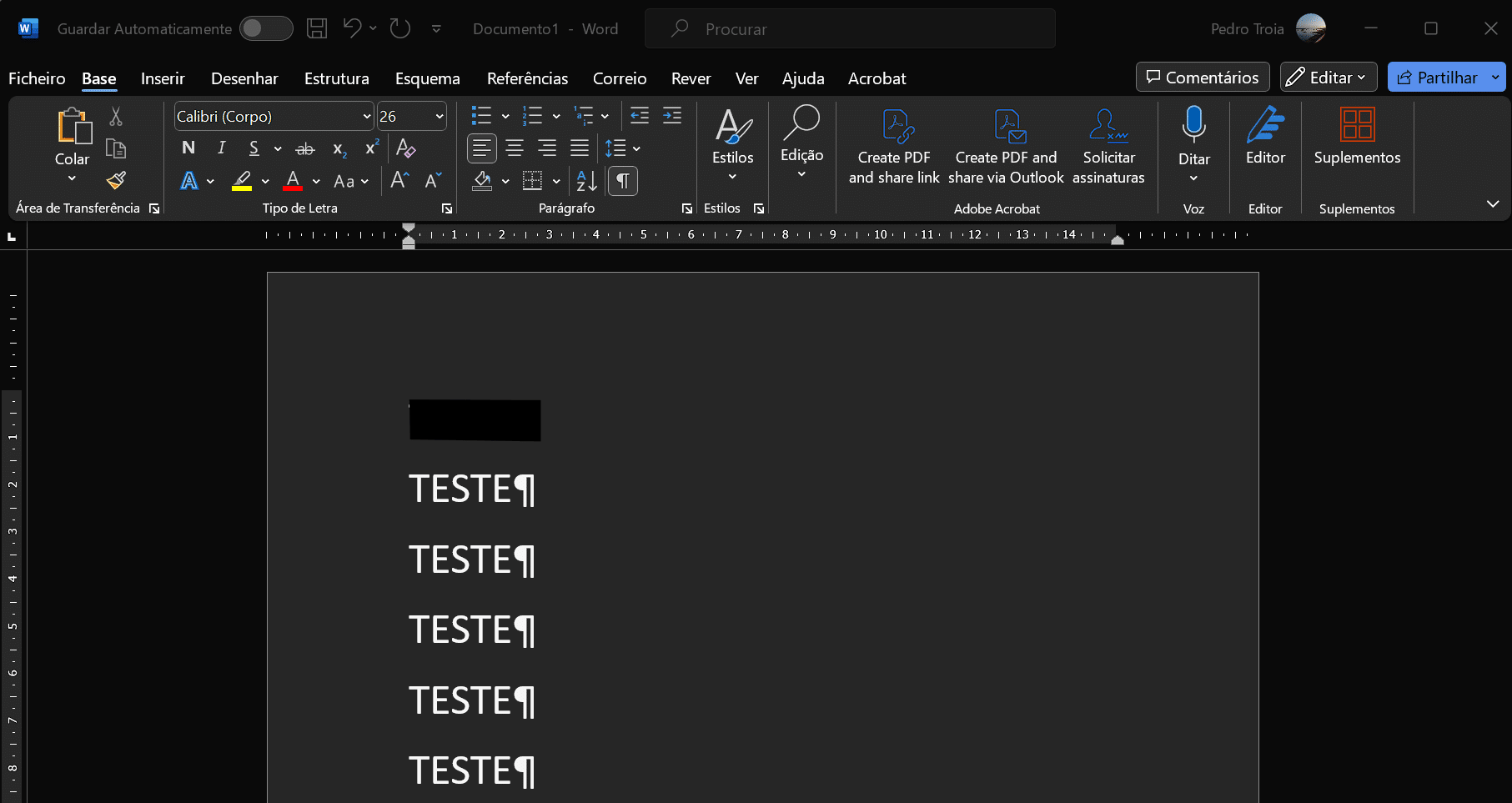 O texto que foi seleccionado fica com uma barra preta em cima.