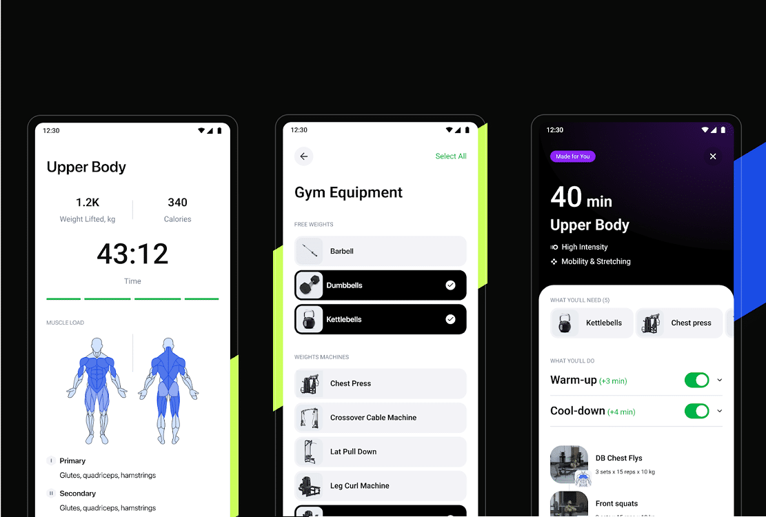 A aplicação permite escolher se quer treinar em casa ou no ginásio, seleccionar o equipamento , as partes do corpo em que se quer focar e vai adaptando a complexidade e a intensidade do treino com base na progressão do utilizador.
