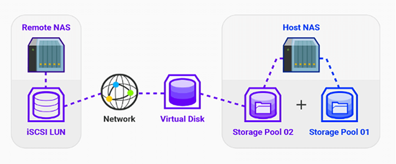 A ideia é simples: usar num determinado NAS a capacidade disponível, e que não esteja a ser usada, de outros NAS na rede – idealmente, NAS com discos em RAID, o que oferece uma garantia de protecção dos dados superior ao que iria acontecer se estivéssemos só a usar um sistema JBOD local.