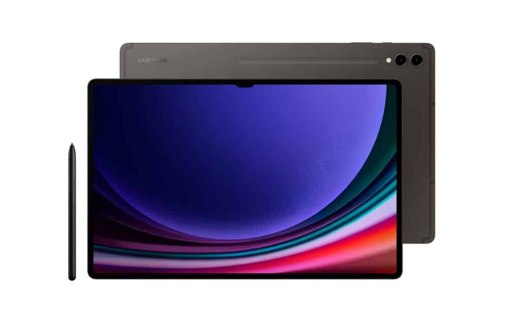 De facto, o Samsung Tab S9 Ultra é um tablet imponente: tem um ecrã AMOLED de 14,6” e uma taxa de actualização máxima de 120 Hz. Depois, vem com uma capa (teclado incluído) e uma caneta para escrever/desenhar no ecrã. Esta capa tem um pequeno compartimento na traseira para guardar a caneta, colocado exactamente no local do chassis onde está o sistema de carregamento da bateria da caneta, que funciona por indução. A qualidade geral é quase perfeita: o chassis é todo em metal com arestas trabalhadas, mas quase em angulo recto.