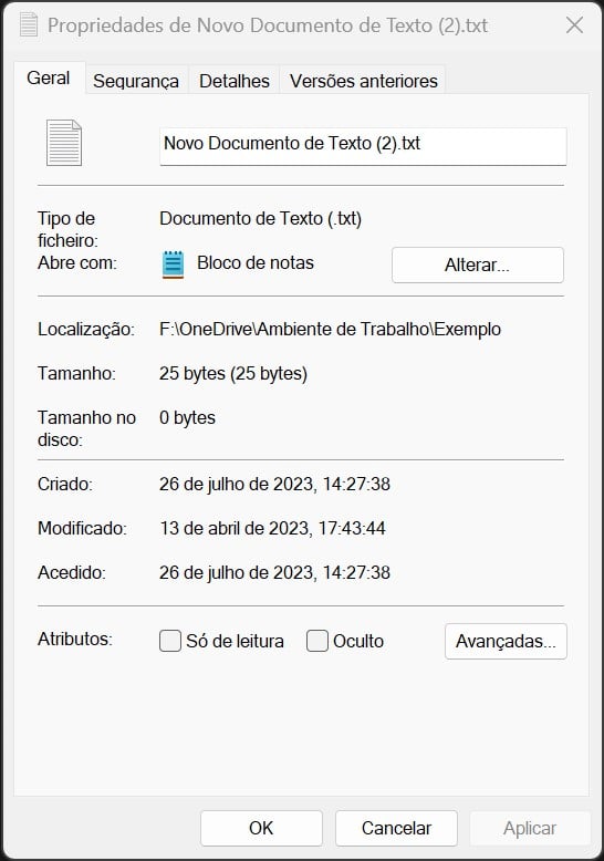 Clique com o botão direito do rato em cima do ícone do ficheiro e escolha a opção ‘Propriedades’.