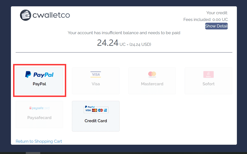Selecione o Paypal e faça a sua compra