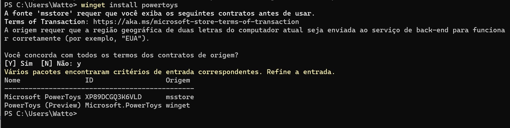 Por exemplo, se quiser instalar o PowerToys, o comando é o seguinte: