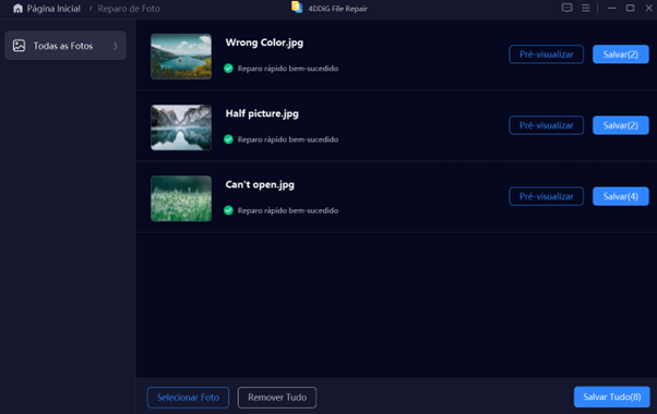 4 – Adicionou as fotos corrompidas? Agora clique em “Reparar Tudo” e deixe tudo com o 4DDiG Photo Repair.