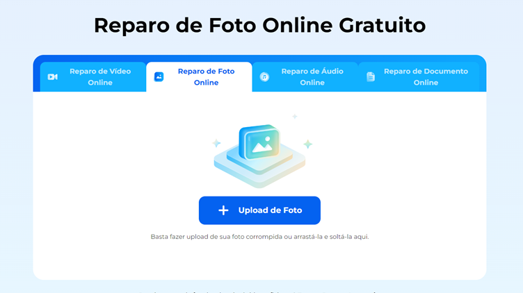 O serviço de reparo online para fotos corrompidas oferece uma solução eficiente e gratuita, suportando ficheiros de imagem com até 300 MB. Ele permite o reparo de uma foto de cada vez, proporcionando um processo rápido e eficaz sem a necessidade de baixar qualquer software.