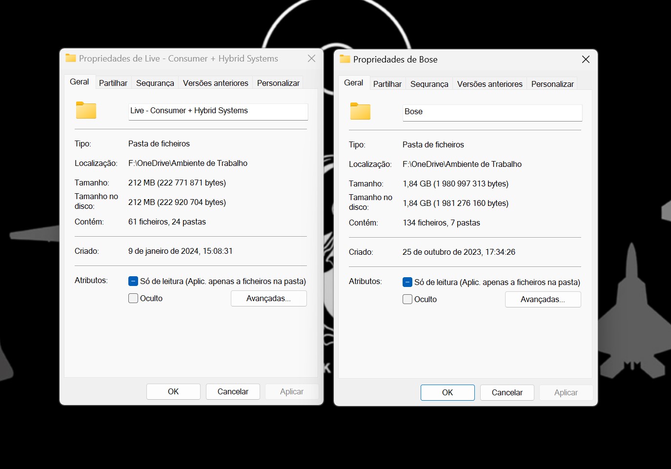 Uma forma simples de ver as diferenças de conteúdo entre duas pastas é abrir as propriedades de cada uma. Nessas janelas é mostrada a quantidade de ficheiros que estão em cada uma e outras informações, como o espaço que ocupam no armazenamento.